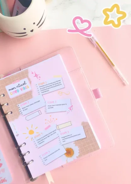 J’aime la papeterie qui vit, les jeux et la liberté d’être soi. J’ai imaginé ce bullet journal modulable pour transformer ton organisation en un rituel magique.